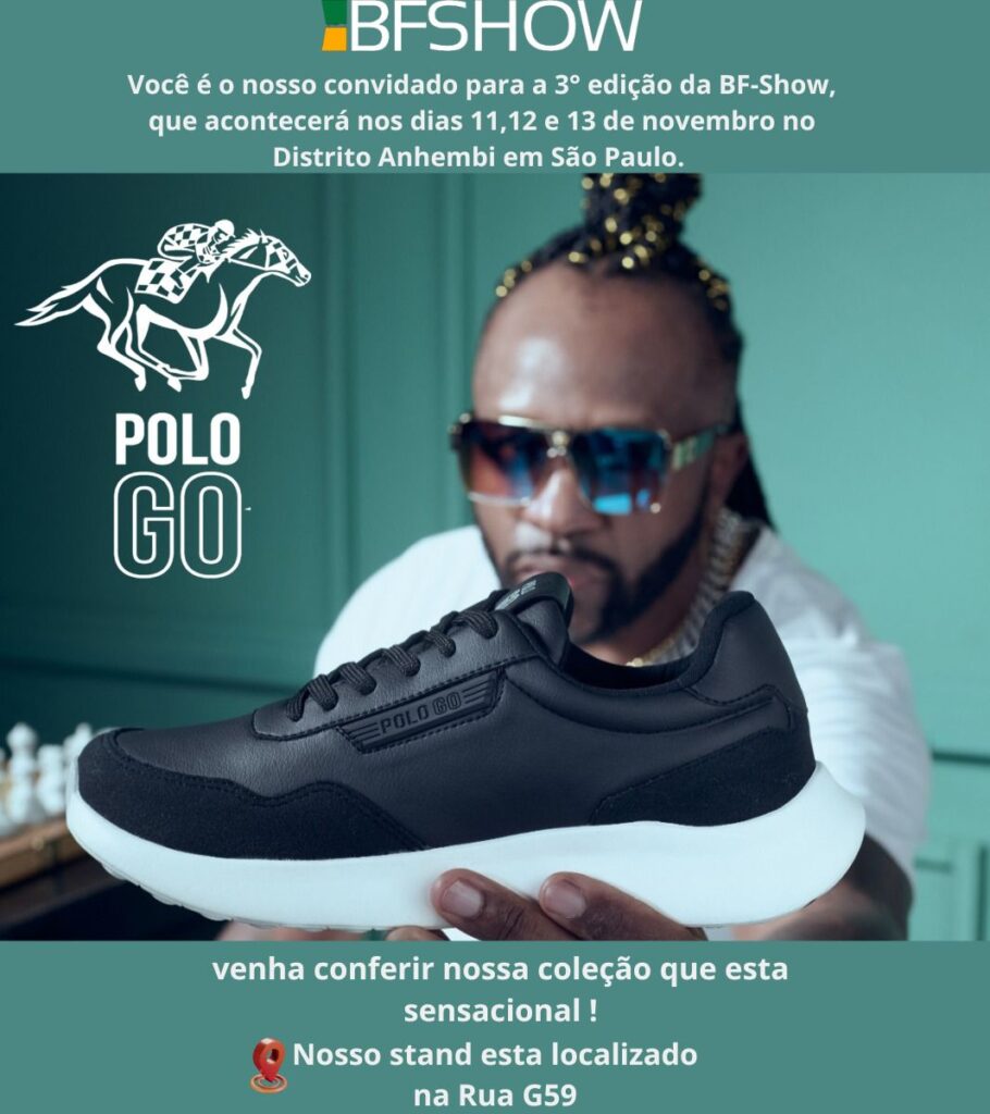 Marca de calçados POLO GO patrocinadora do Podcast Sem Arrudeio marca presença na 3° BF-SHOW.