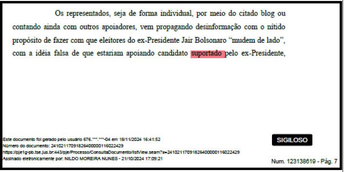Fontes do Sem Arrudeio.com informaram que, no processo de número 0600089-92.2024.6.15.0070, que está sob sigilo, os advogados de acusação da coligação PL e NOVO ” Queiroga e Queiroz ” no processo político contra militantes bolsonaristas afirmam que Bolsonaro suportava Marcelo Queiroga.