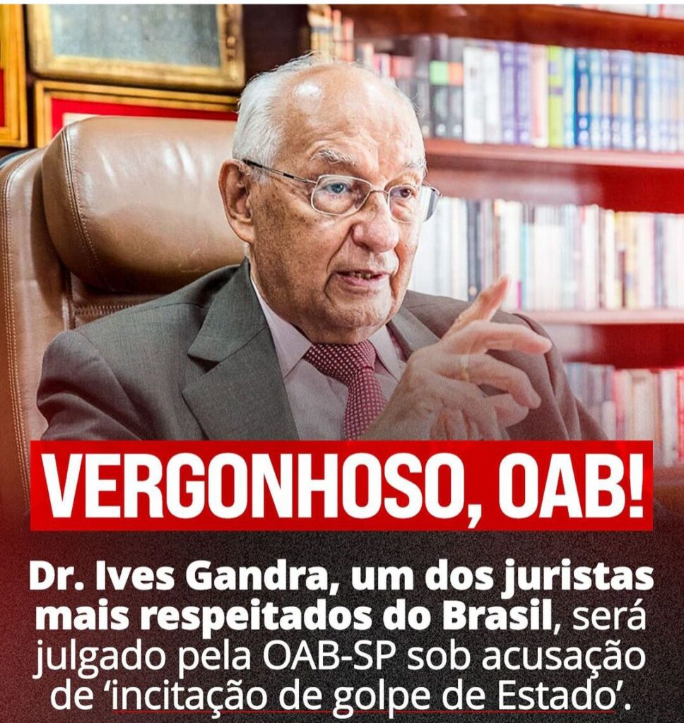 Dr. Ives Grand, um dos juristas mais respeitados do Brasil, será julgado pela OAB-SP sob acusação de incitação a golpe de Estado.