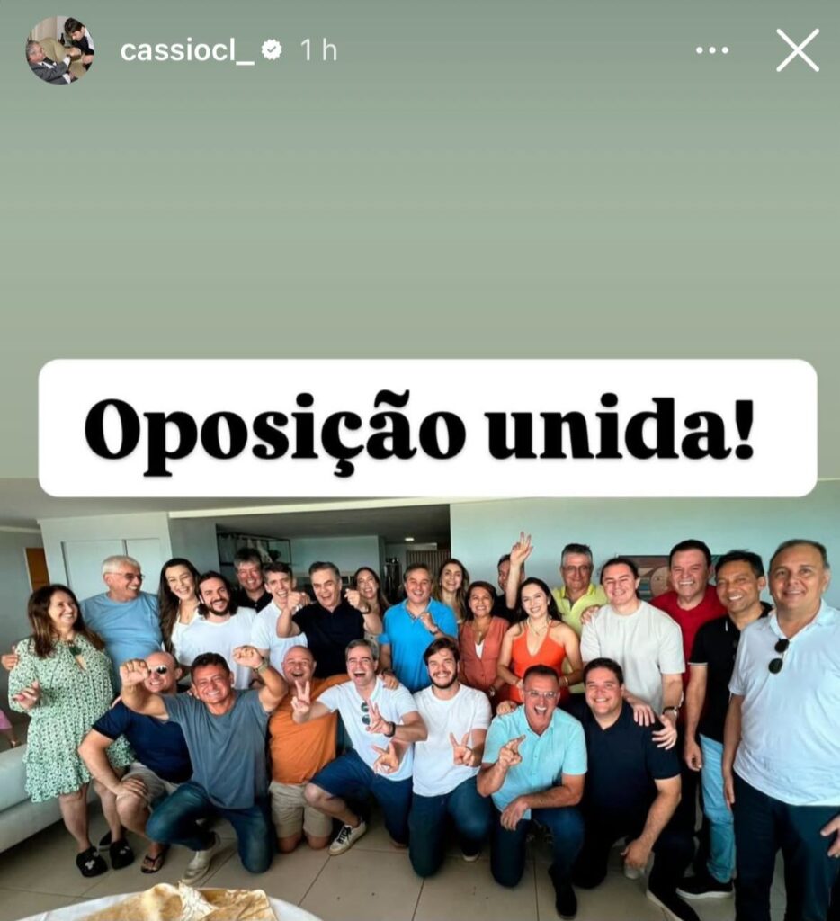Foto do Instagram do ex-senador Cássio Cunha Lima, onde aparecem o senador Veneziano, adversário dos bolsonaristas e contrário à anistia política aos patriotas presos. Também estão na foto Cabo Gilberto e Virgulino.