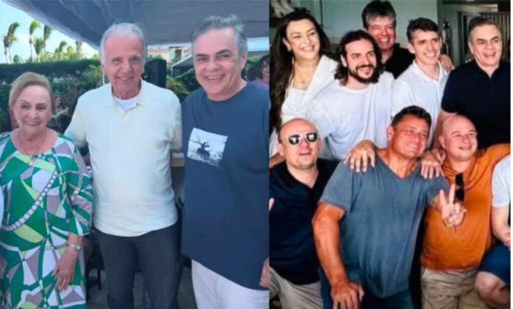 Na primeira foto, à esquerda, temos a matriarca e líder do clã Cunha Lima, Senhora Glória Cunha Lima, acompanhada de seu filho, o ex-senador e ex-governador Cássio Cunha Lima, figura central na articulação política do clã.