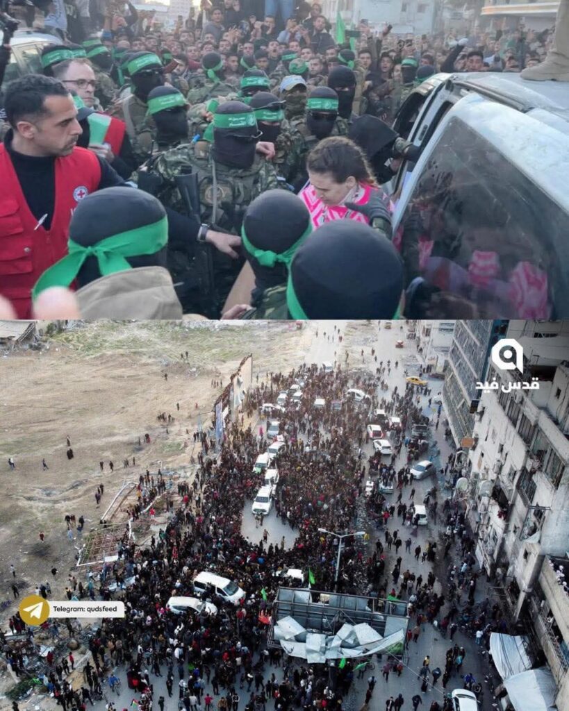 Aparentemente, o Hamas poupou parte de um batalhão, deixando-o de fora dos combates contra Israel na guerra atual.  Eles mantiveram essas pessoas protegidas, guardaram seus uniformes (os quais são usados apenas diante das câmeras, uma vez que na guerra eles lutam sem uniforme), guardaram suas armas, e montaram uma cena perfeita de filme para o dia que um acordo de troca de reféns por terroristas entrasse em vigor.