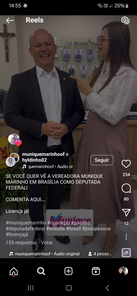 Seria esse vídeo um indício de que Munique pretende deixar o União Brasil? Ou já pode ser considerado uma traição ao senador Efraim Moraes, líder do partido na Paraíba? A movimentação política da vereadora gera especulações sobre seus próximos passos e como isso pode impactar o cenário político local.