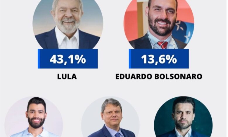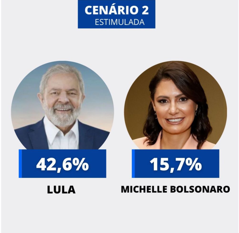 Em um segundo cenário, Lula venceria Michelle Bolsonaro (PL) com 42,6% contra 15,7%. O petista lidera em todas as regiões de Pernambuco, destacando-se no Sertão do São Francisco, onde alcança 47,3% contra 9,9% de Eduardo Bolsonaro e 46,5% contra 10,7% de Michelle.