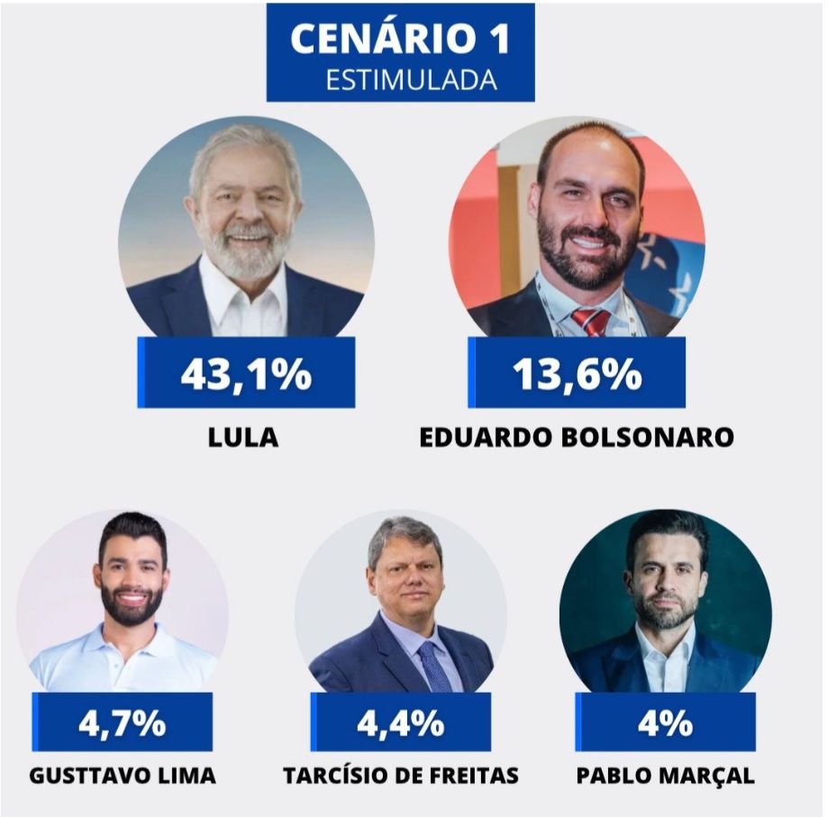 A última pesquisa do Instituto Opinião, em parceria com este blog, apresenta os números para a eleição presidencial em Pernambuco em 2026. No primeiro cenário, o presidente Lula (PT) venceria o deputado Eduardo Bolsonaro (PL) com ampla vantagem, obtendo 43,1% dos votos contra 13,6%. Gusttavo Lima aparece com 4,7%, Tarcísio de Freitas com 4,4% e Pablo Marçal com 4%. Outros candidatos, como Ratinho Júnior, Romeu Zema e Ronaldo Caiado, pontuam abaixo de 2%.