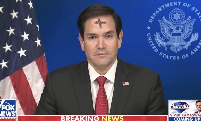 Na última entrevista concedida à Fox News, o Secretário de Estado dos Estados Unidos, Marco Rubio, chamou atenção não apenas por suas declarações políticas, mas também por um símbolo religioso estampado em sua testa: a cruz de cinzas, tradicionalmente aplicada durante a Quarta-Feira de Cinzas, marcando o início da Quaresma.