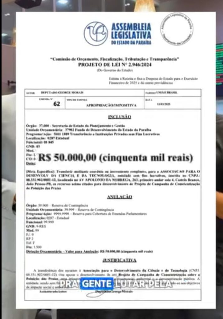 O Movimento ESGOTEI, criado em maio de 2024 com o objetivo de denunciar a poluição na orla de João Pessoa e Cabedelo, ganhou notoriedade como uma mobilização popular e apartidária. No entanto, a recente confirmação de que o grupo recebeu uma emenda parlamentar no valor de R$ 50 mil levantou questionamentos sobre a independência da iniciativa.