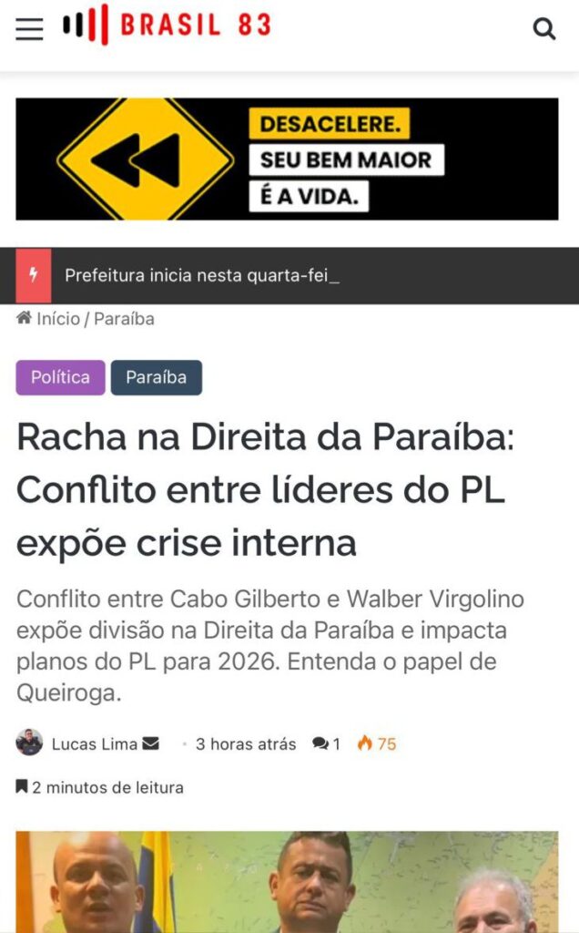 Diante desse cenário, surge uma pergunta inevitável: a inclusão do Brasil 83 entre os veículos contratados pela SECOM teria sido uma indicação do deputado Cabo Gilberto ao secretário Nonato Bandeira?
