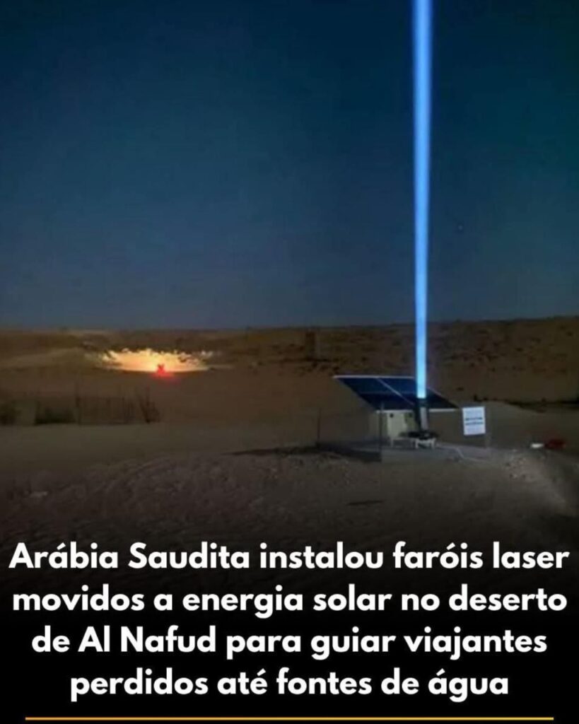 Tecnologia e humanidade lado a lado Em tempos de crescente dependência da tecnologia, a Arábia Saudita mostra como a inovação pode ser aplicada de forma prática, ética e voltada ao bem comum. Os faróis a laser solares do Al Nafud são um exemplo claro de como avanços simples, quando bem utilizados, podem literalmente iluminar o caminho de quem mais precisa.