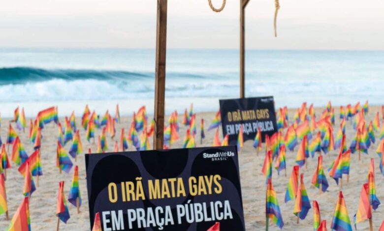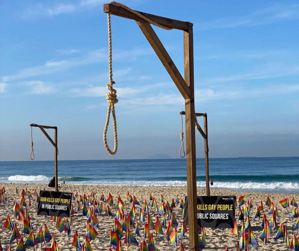 Durante a realização da cúpula das lideranças dos BRICS, que acontece neste domingo (6) e segunda-feira (7) no Rio de Janeiro, a organização StandWithUs Brasil realizou um impactante protesto na Praia de Ipanema. A manifestação teve como objetivo chamar a atenção para a sistemática perseguição de minorias pelo regime do Irã, país recentemente admitido no bloco formado por Brasil, Rússia, Índia, China e África do Sul.