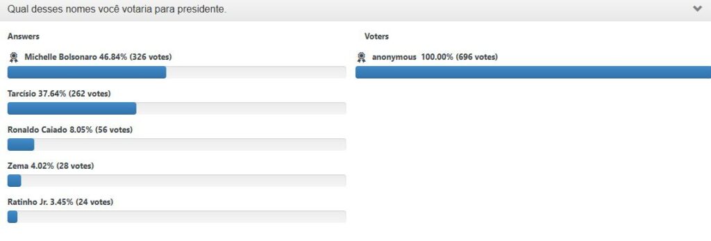Outro aspecto relevante é o perfil dos participantes: em sua maioria, eleitores de direita altamente engajados e com conhecimento político, o que dá à enquete um caráter de termômetro fiel do núcleo conservador.