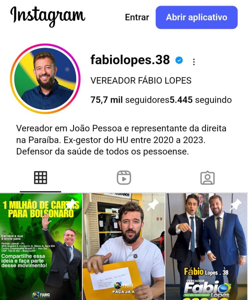 O vereador de João Pessoa, Fábio Lopes (PL), resolveu posar de paladino do bolsonarismo nas redes sociais. Em um vídeo, partiu para cima do governador João Azevêdo (PSB), criticando sua aliança política com o presidente Luiz Inácio Lula da Silva (PT).