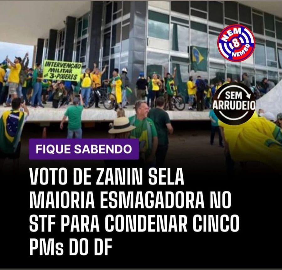 O Supremo Tribunal Federal (STF) consolidou uma ampla maioria de 8 votos a 1 para condenar cinco dos sete policiais militares do Distrito Federal (PMs do DF) réus no processo em andamento. O placar foi fechado após o voto do ministro Cristiano Zanin, que acompanhou o entendimento da maioria da Corte pela responsabilização dos agentes.