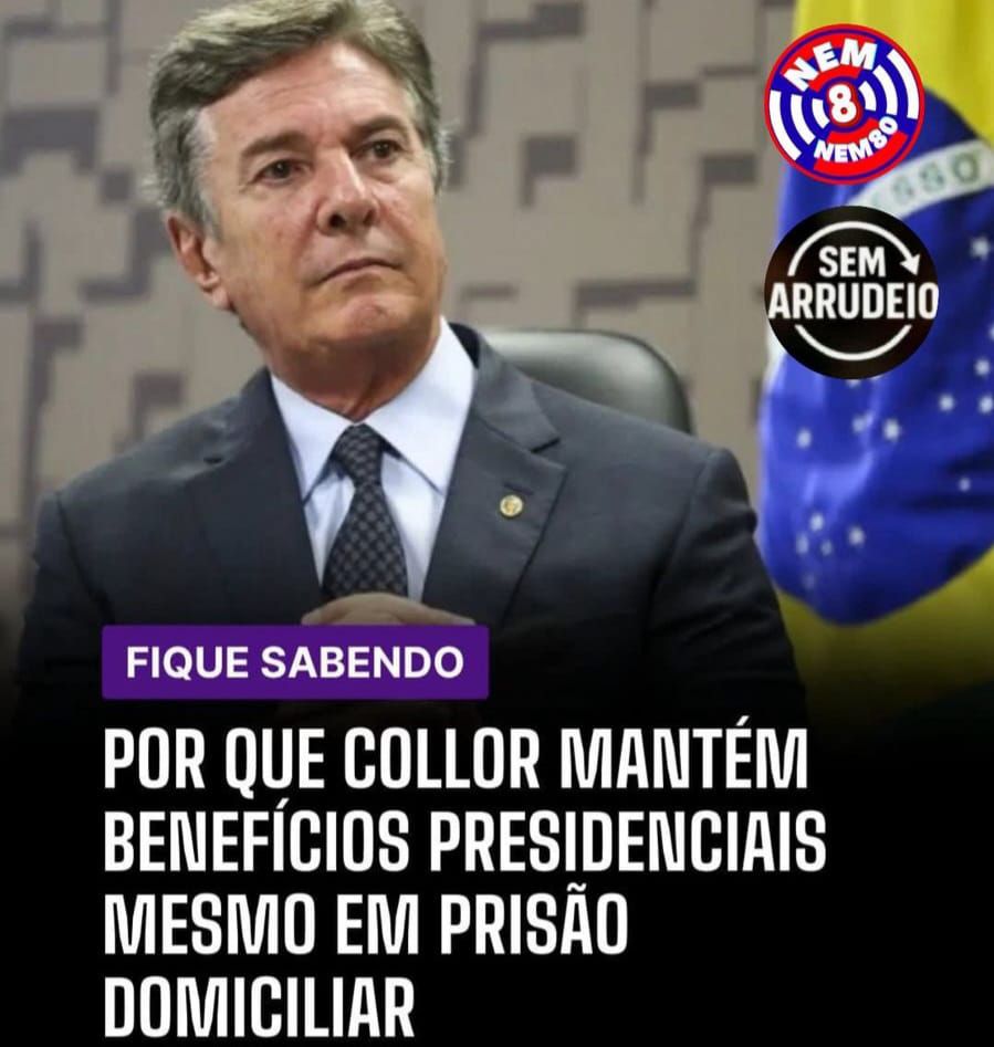 O ex-presidente Fernando Collor de Mello (condenado a oito anos e dez meses por corrupção passiva e lavagem de dinheiro) continua a receber seus benefícios e direitos presidenciais vitalícios, como carros oficiais e segurança, mesmo estando em prisão domiciliar desde o final de abril.