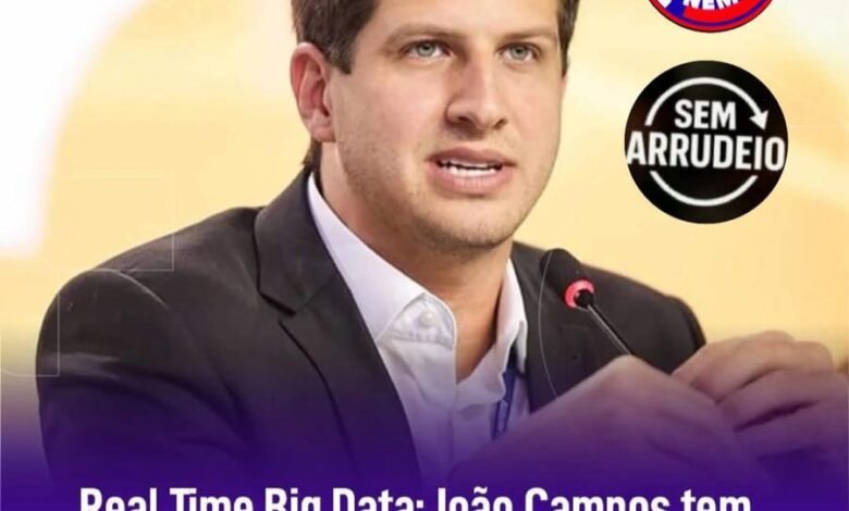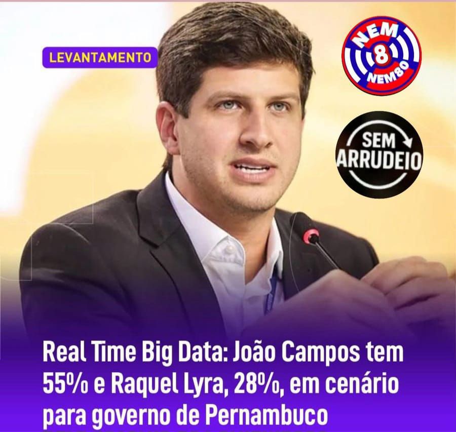 Real Time Big Data: João Campos tem 53% e Raquel lira, 28%, em cenário para governo de Pernambuco