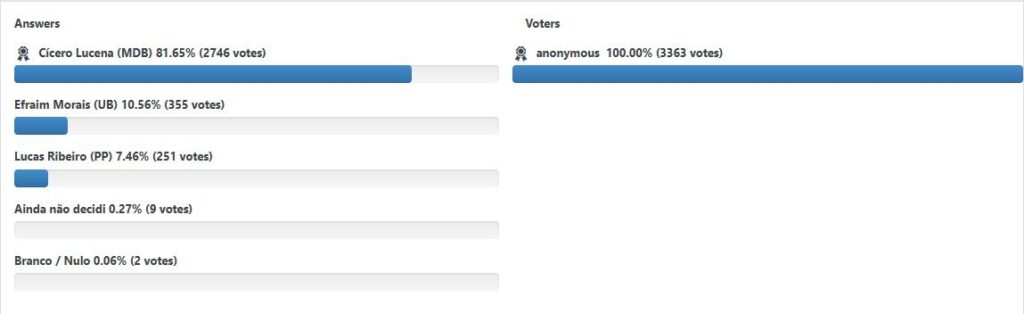Ao todo, a enquete registrou 4.764 acessos, dos quais 3.363 votos foram considerados válidos, demonstrando forte engajamento dos participantes.