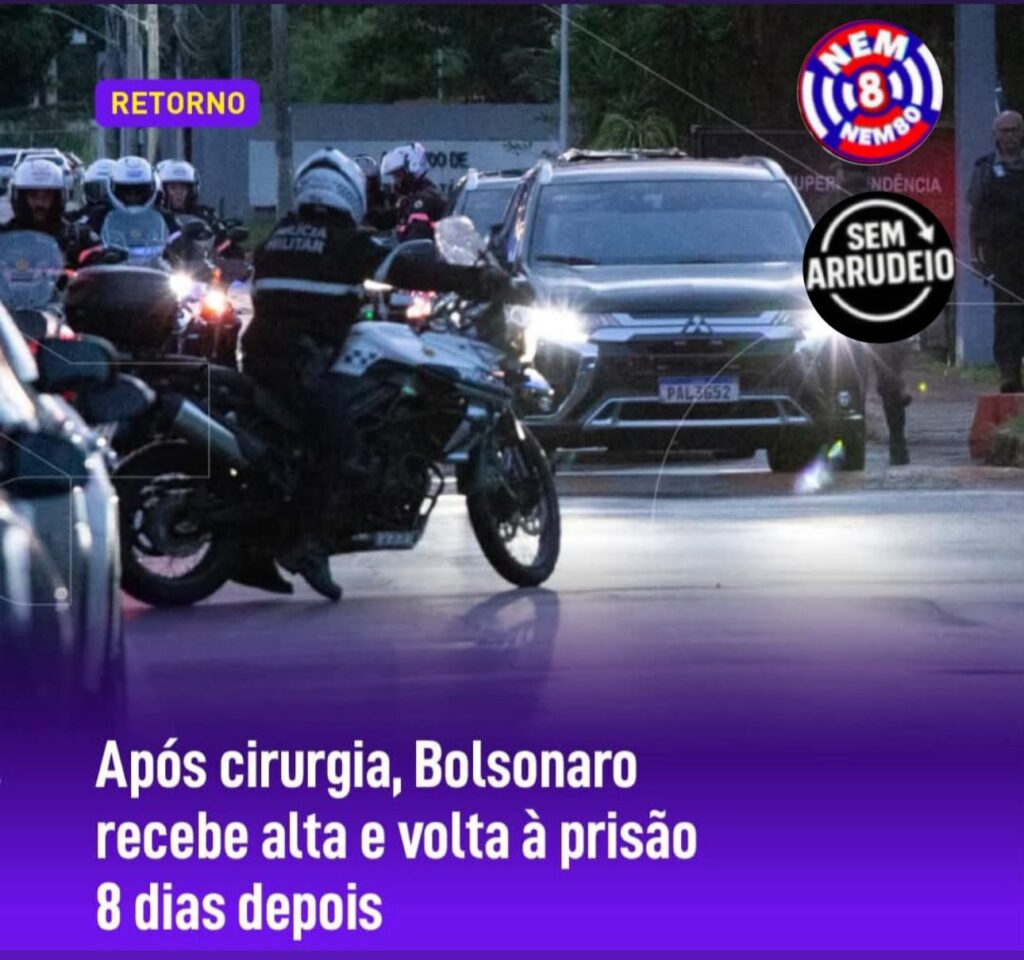 Após cirurgia,Bolsonaro recebe alta e volta a prisão 8 dias depois