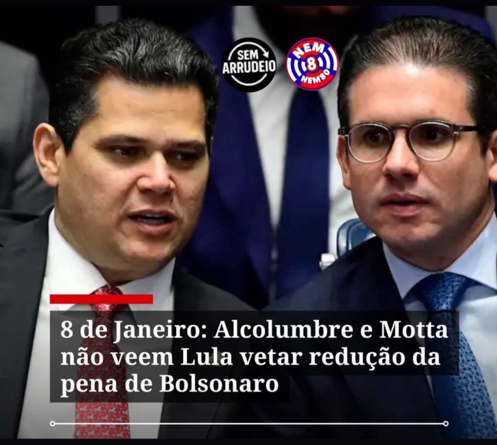 8 de janeiro: Alcolumbre e Motta não vêem Lula vetar a redução da pena de Bolsonaro