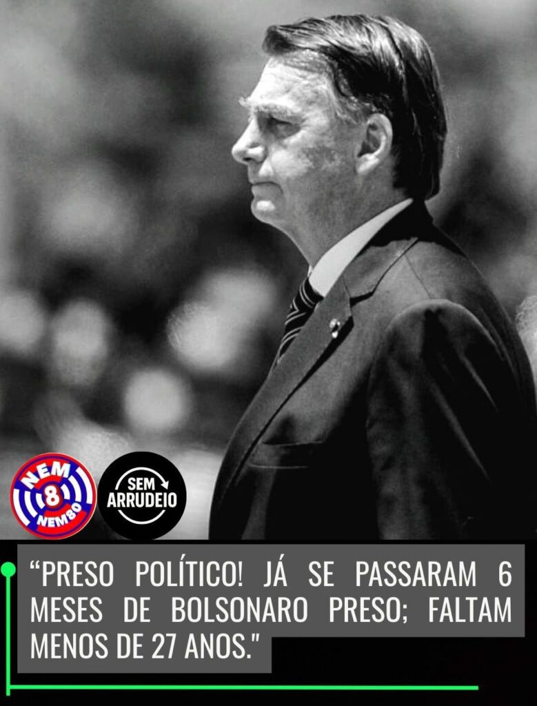 PRESO POLÍTICO! JÁ SE PASSARAM 6 MESES DE BOLSONARO PRESO; FALTAM MENOS DE 27 ANOS.