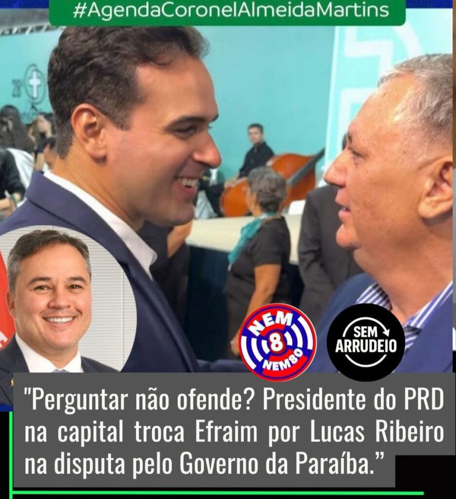 Uma pergunta que não quer calar nos bastidores da política paraibana: o presidente do PRD em João Pessoa, identificado como bolsonarista raiz, teria trocado o nome de Efraim Morais (União Brasil), apontado como o escolhido do ex-presidente Jair Bolsonaro para disputar o Governo da Paraíba, pelo vice-governador Lucas Ribeiro (PP), aliado do presidente Luiz Inácio Lula da Silva?
