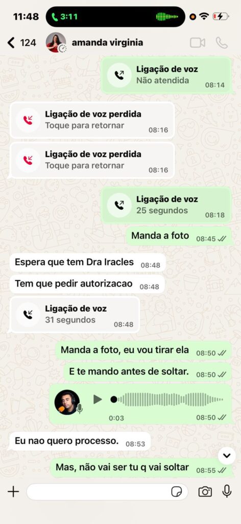 Print da ligação pedindo a foto