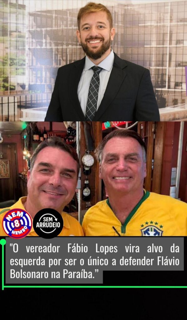“O Vereador Fábio Lopes vira alvo da esquerda por ser o único a defender, de peito aberto, Flávio Bolsonaro na Paraíba”