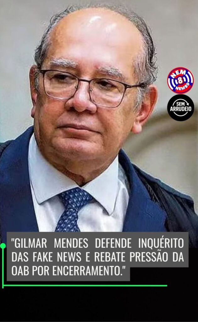 GILMAR MENDES DEFENDE INQUÉRITO D S FAKE NEWS E REBATE PRESSÃO DA OAB POR ENCERRAMENTO
