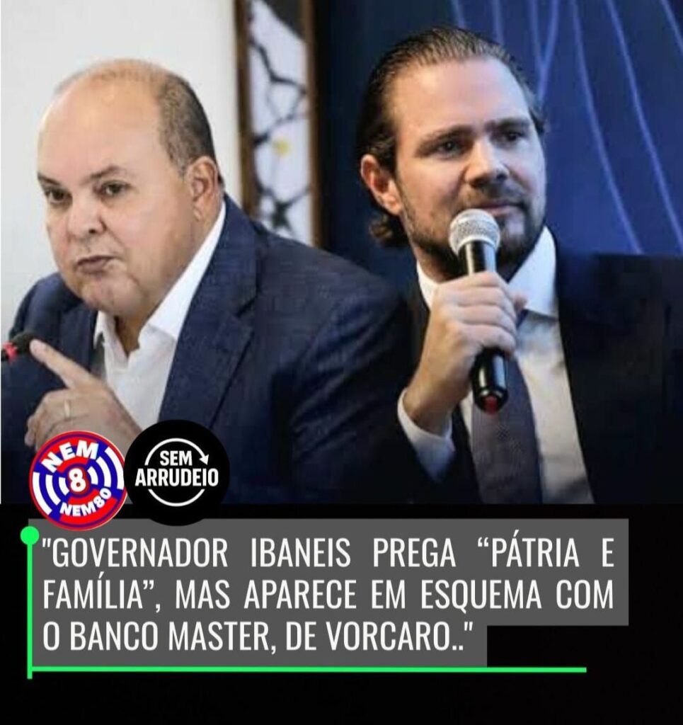 GOVERNADOR IBANEIS PREGA “PÁTRIA E FAMÍLIA”, MAS APARECE EM ESQUEMA COM O BANCO MASTER, DE VORCARO.