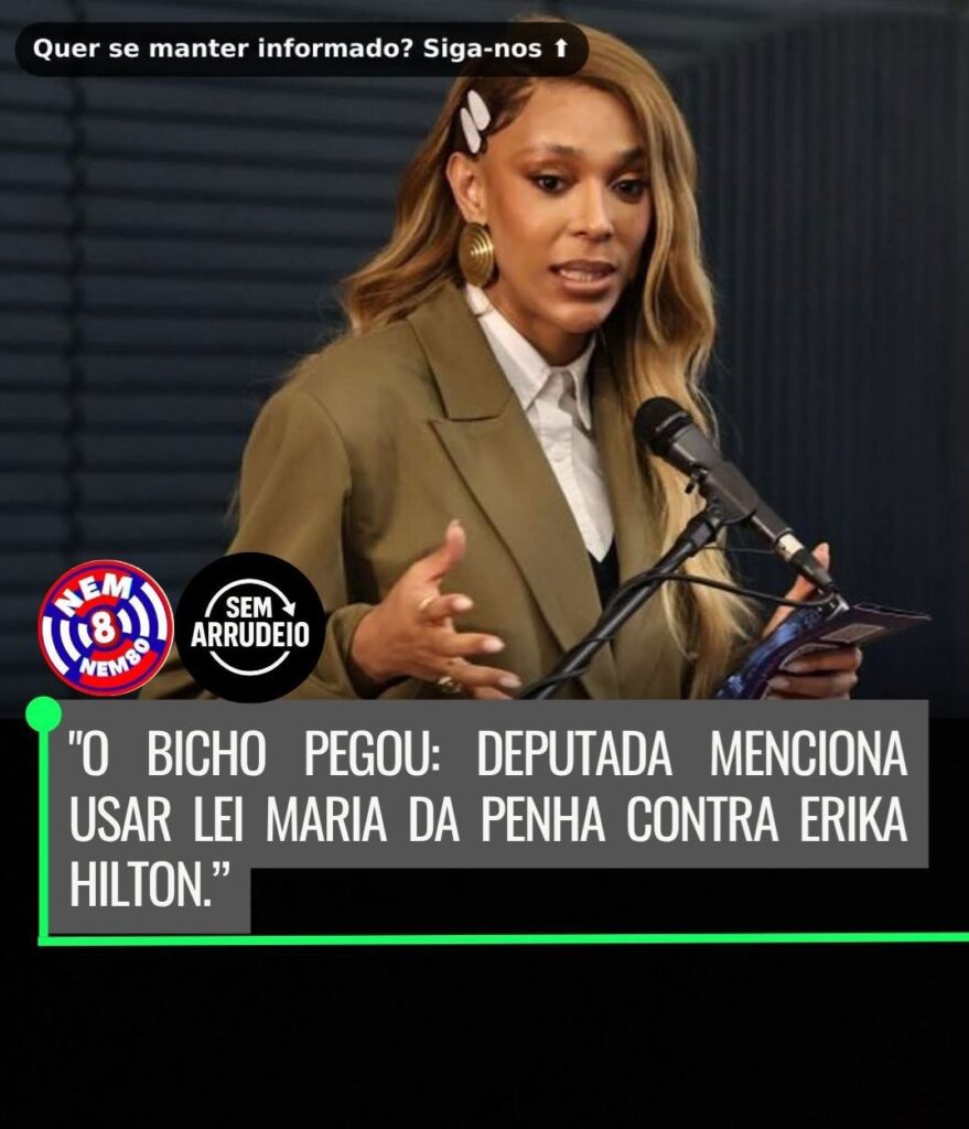 O BICHO PEGOU: DEPUTADA MENCIONA USAR LEI MARIA DA PENHA CONTRA ERIKA HILTON