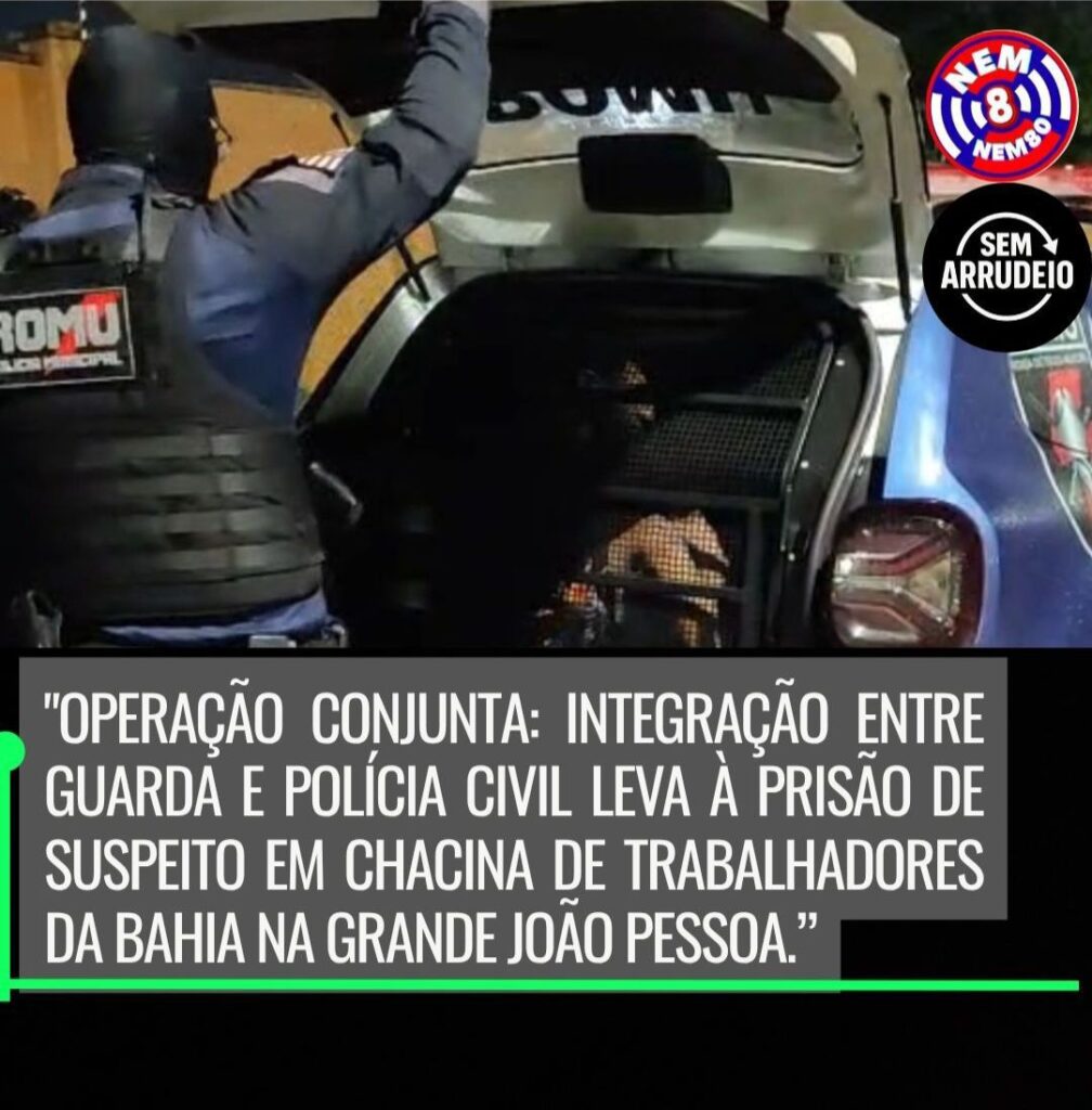 OPERAÇÃO CONJUNTA: INTEGRAÇÃO ENTRE GUARDA E POLÍCIA CIVIL LEVA À PRISÃO DE SUSPEITO EM CHACINA DE TRABALHADORES DA BAHIA NA GRANDE JOÃO PESSOA