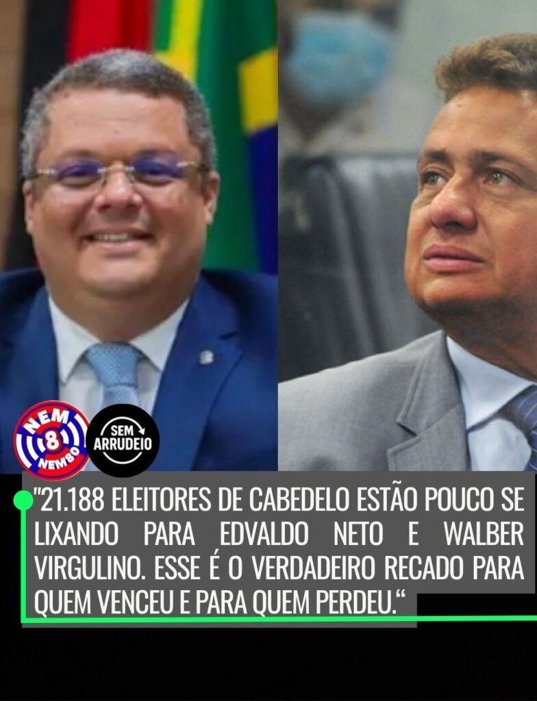 “21% ELEITORES DE CABEDELO ESTÃO POUCO SE LIXANDO PARA EDVALDO NETO E WALBER VIRGULINO. ESSE É O VERDADEIRO RECADO PARA QUEM VENCEU E PARA QUEM PERDEU”